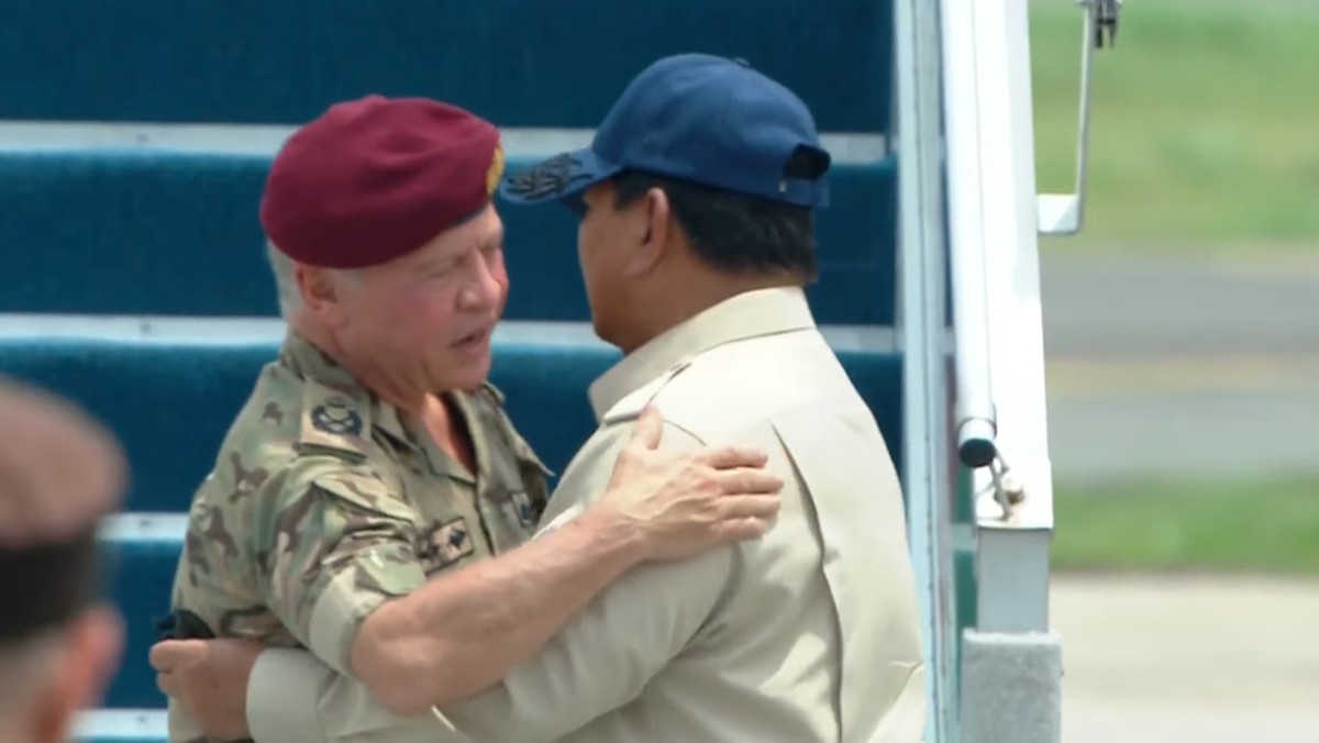 Momen Pelukan Hangat Prabowo dan Raja Yordania di Lanud Halim