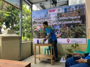 Pelatihan budidaya cabai organik dipandu oleh Willy Kurniawan yang memberikan teknik sederhana mulai dari penyemaian hingga panen, sehingga mudah diterapkan oleh peserta di rumah masing-masing.